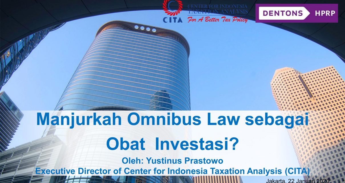 Unduh materi: Manjurkah Omnibus Law sebagai Obat Investasi? oleh Yustinus Prastowo Direktur Eksekutif Center for Indonesia Taxation Analysis (unduh)