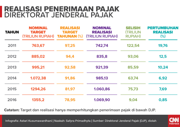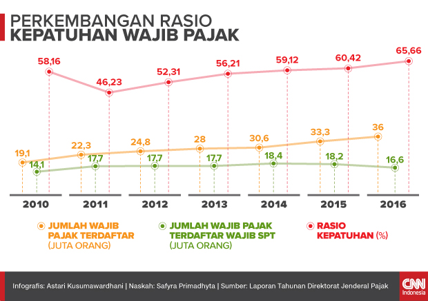“Dari perhitungan tersebut, berarti target penerimaan pajak di tahun 2018 dipatok tumbuh minimal 18 persen dari realisasi 2017. Padahal, selama tiga tahun terakhir laju pertumbuhan penerimaan pajak hanya kurang dari 10 persen,” ujar Darussalam kepada CNNIndonesia.com, Rabu (25/10).