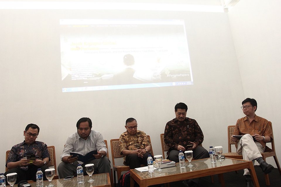“Butuh waktu dua minggu untuk merekonsiliasi data Panama Papers,” kata Wakil Kepala Pusat Pelaporan dan Analisis Transaksi Keuangan (PPATK) Agus Santoso dalam diskusi “Bedah Kasus Aset Indonesia di Negeri Suaka Pajak” di Kedai Pos, kawasan Kota Tua, Jakarta, Selasa (12/4). Diskusi yang diselenggarakan oleh Jaringan Indonesia Untuk Jurnalisme Investigasi (Jaring) bekerja sama dengan Katadata ini, juga menghadirkan pembicara: Direktur Eksekutif Center for Indonesia Taxation Analysis Yustinus Prastowo, akuntan forensik Theodorus M Tuanakotta, jurnalis Tempo yang menelisik dokumen Panama Papers Wahyu Dhyatmika, dan Metta Dharmasaputra, jurnalis yang menginvestigasi kasus pajak terbesar di Indonesia, Asian Agri.